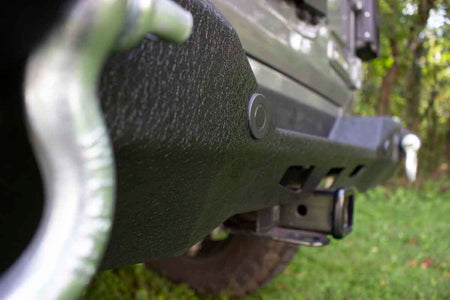 Constructed from sturdy 3/16" steel, this bumper boasts a dual-stage powder-coated black finish for that sleek yet rugged appearance, ensuring it's resistant to the regular wear and the harshness of off-road adventures.