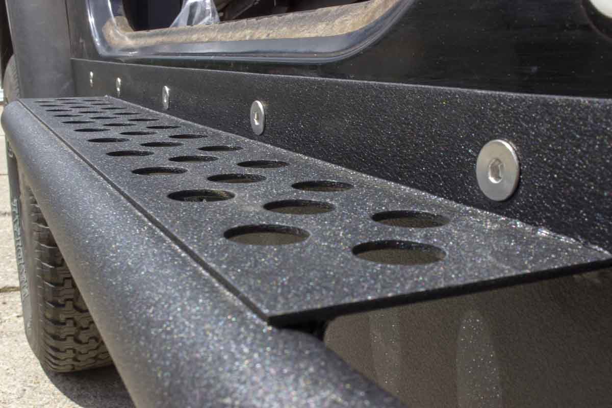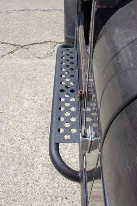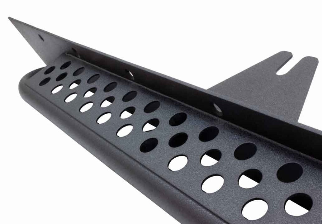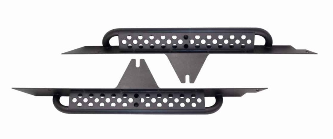 Each rock slider includes a laser-cut step plate featuring strategically placed holes for improved traction. The stainless steel countersunk hardware not only secures these sliders firmly in place but also ensures a clean and polished look once installed. With a sturdy 2" diameter and .120 wall tubing, these rock sliders effectively safeguard the side of your YJ Wrangler, offering much-needed protection from obstacles on the trail. Additionally, the tube side step makes vehicle entry a breeze, providing the perfect combination of function and form. Transform your YJ Wrangler into a trail-ready machine with Fishbone Offroad Rock Sliders, offering unbeatable performance and peace of mind on any adventure. Upgrade your off-road experience today!