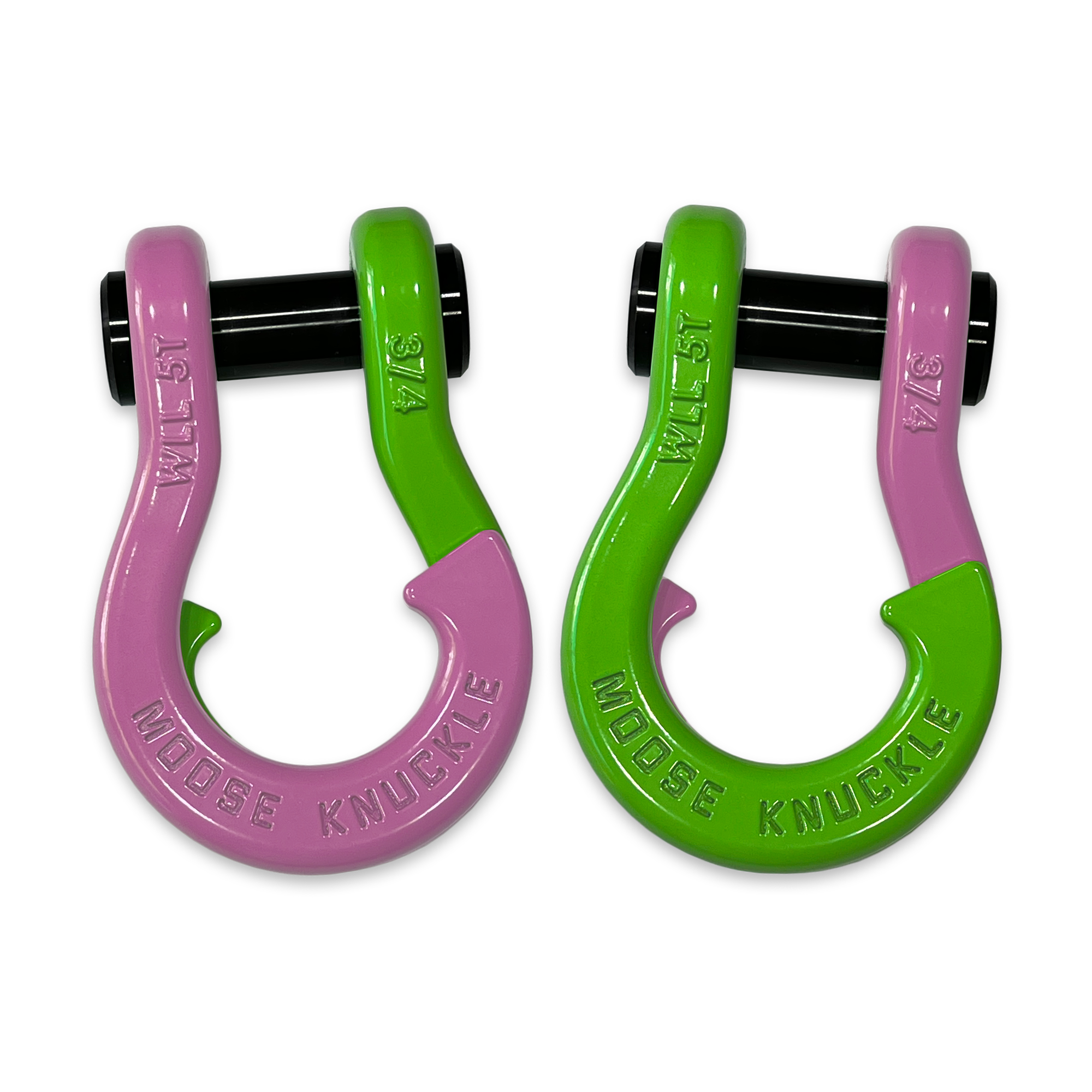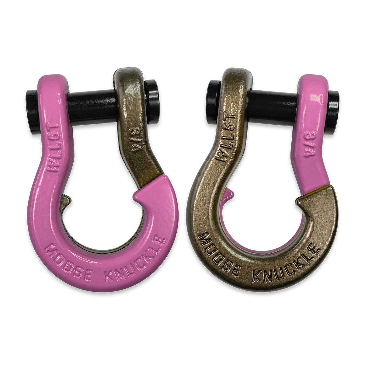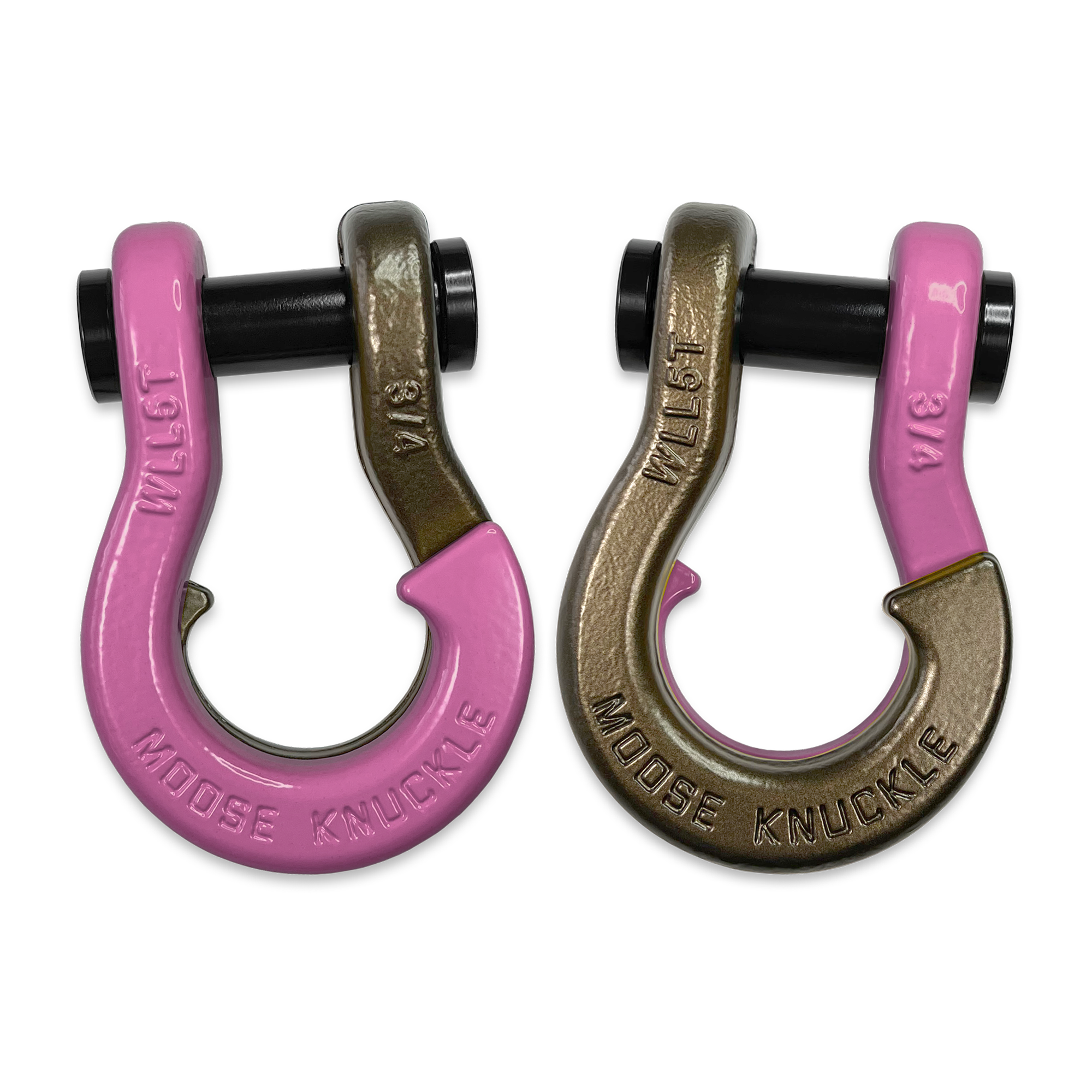 All color options are fully interchangeable. Buy two different color shackles and combine them to match the color scheme of your rig and give your build a more custom accented look. The hooked sides are fully covered with a durable powder coating pantone color matched to popular truck and Jeep colors. The shackle pin is Black Nickel plated and machined from High Strength Grade 8 Carbon Steel.