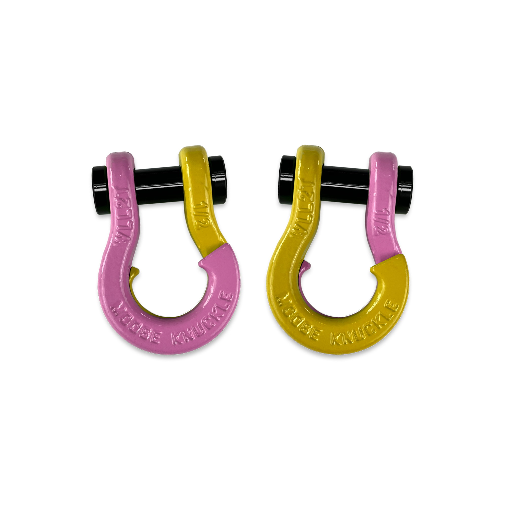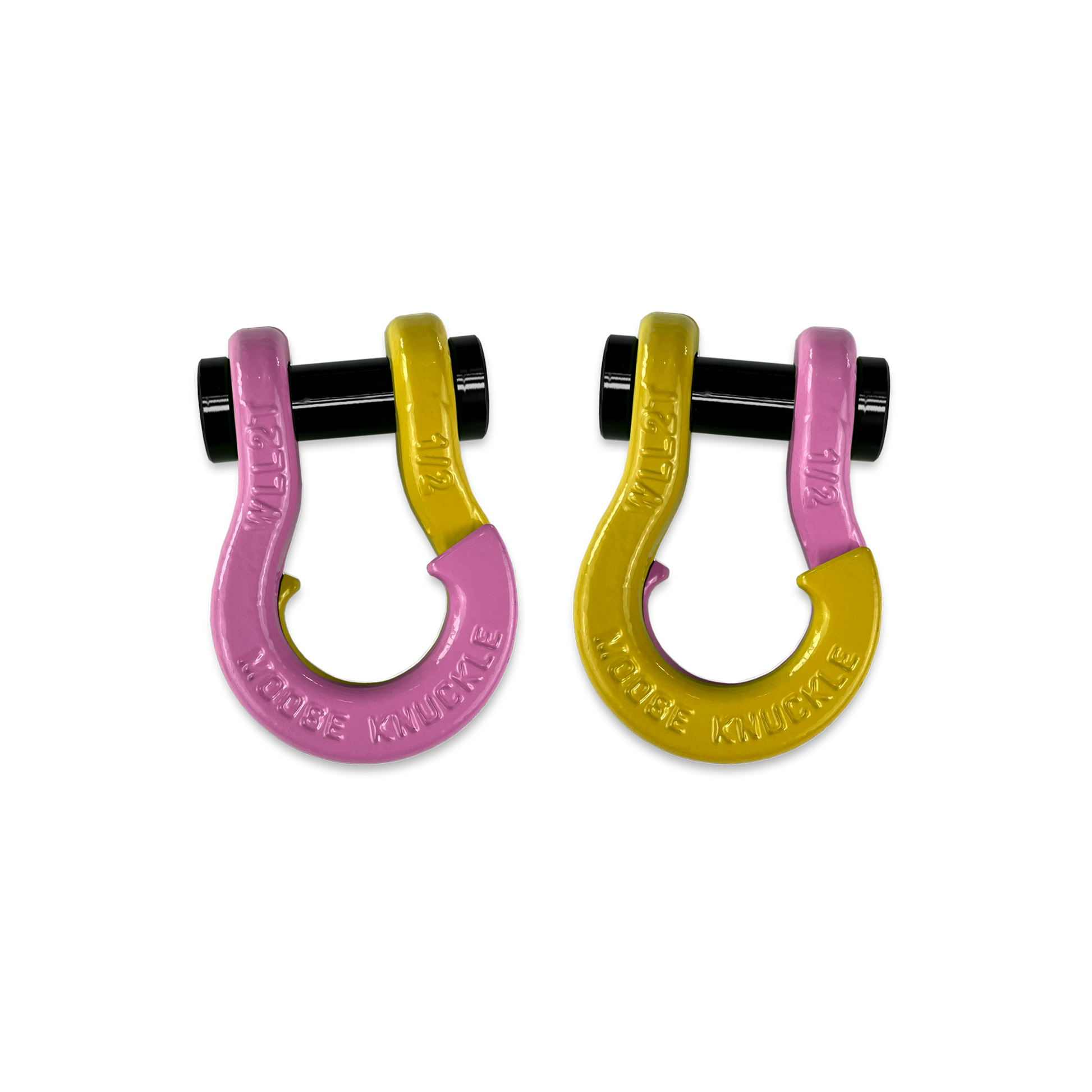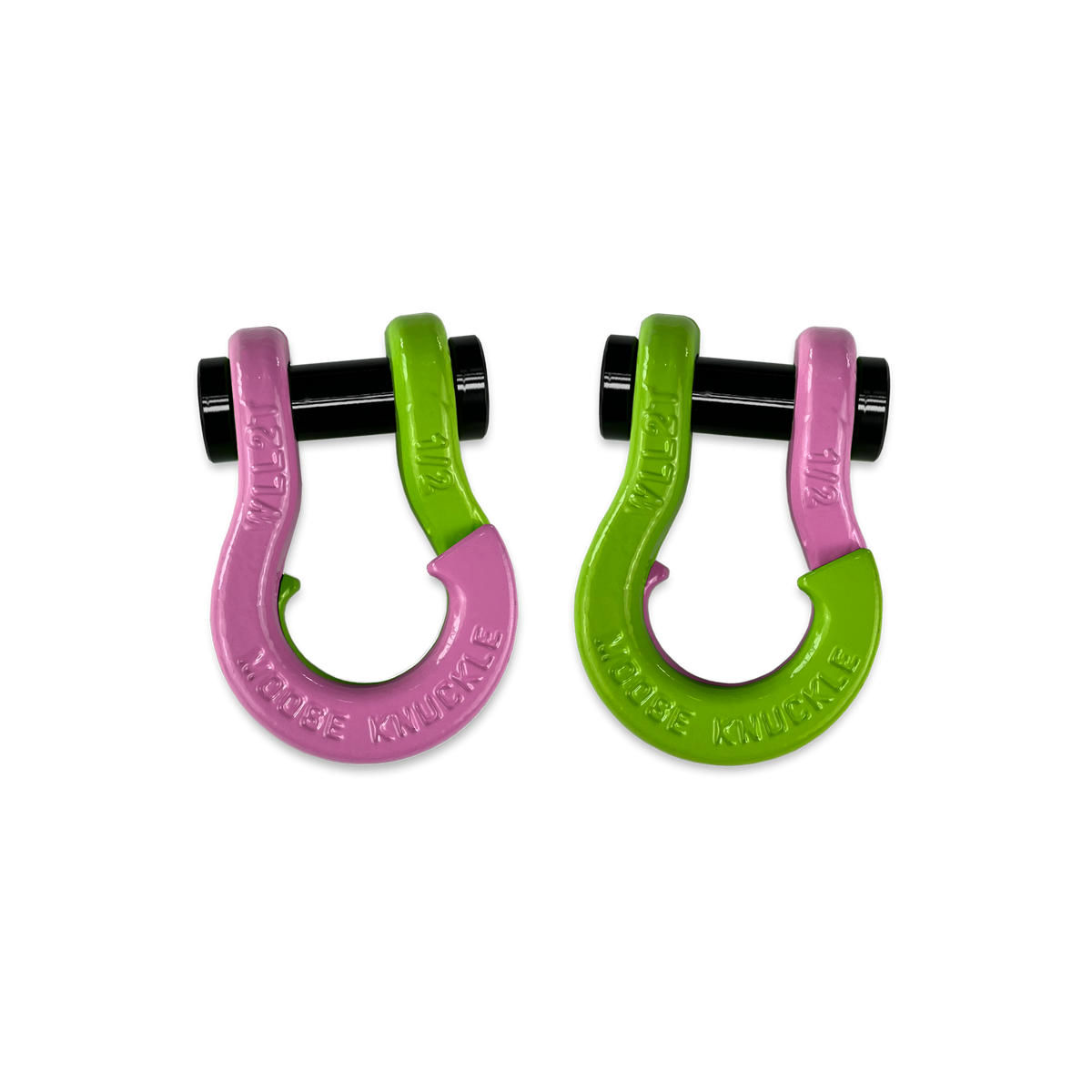 All color options are fully interchangeable. Buy two different color shackles and combine them to match the color scheme of your rig and give your build a more custom accented look. The hooked sides are fully covered with a durable powder coating pantone color matched to popular truck and Jeep colors. The shackle pin is Black Nickel plated and machined from High Strength Grade 8 Carbon Steel.