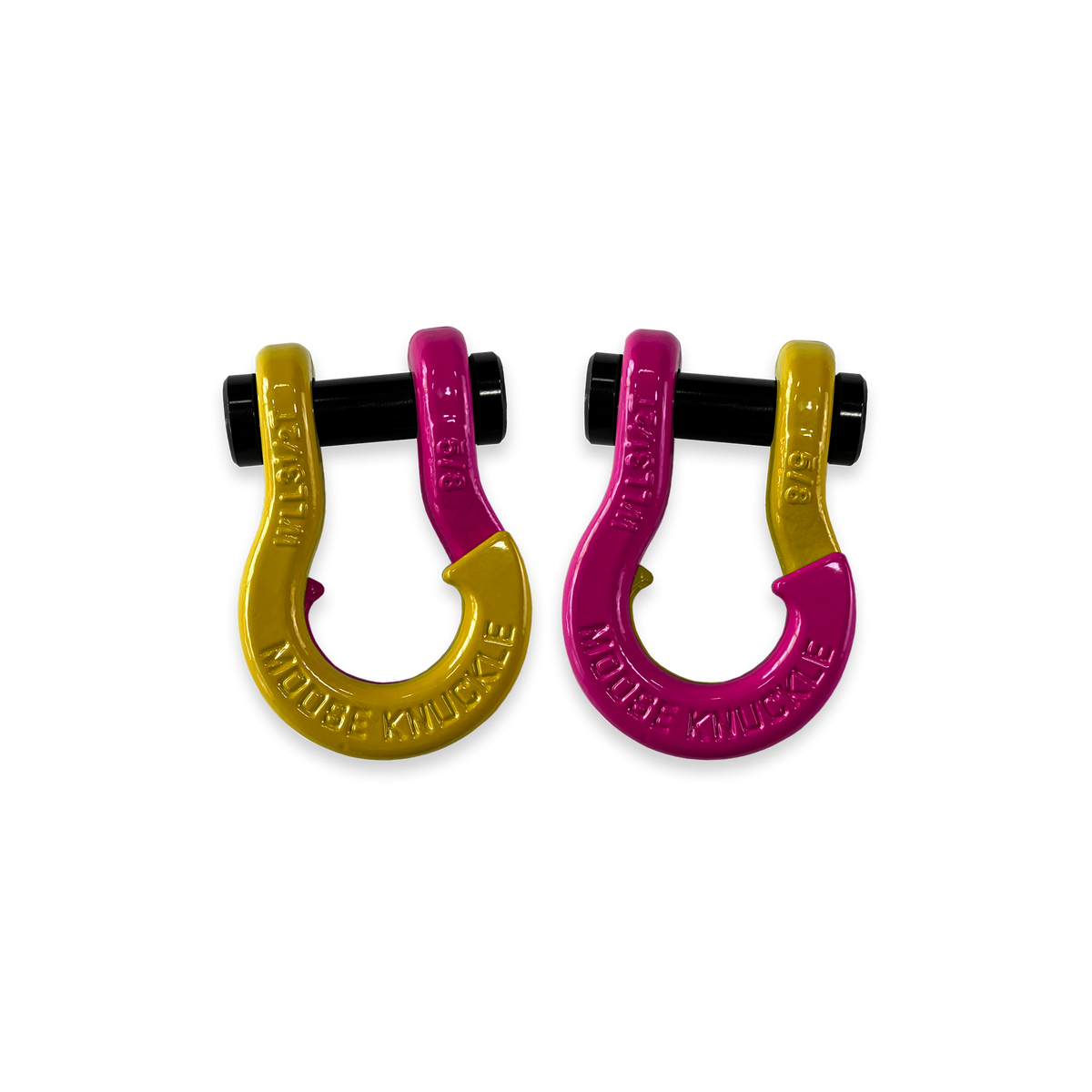 All color options are fully interchangeable. Buy two different color shackles and combine them to match the color scheme of your rig and give your build a more custom accented look. The hooked sides are fully covered with a durable powder coating pantone color matched to popular truck and Jeep colors. The shackle pin is Black Nickel plated and machined from High Strength Grade 8 Carbon Steel.