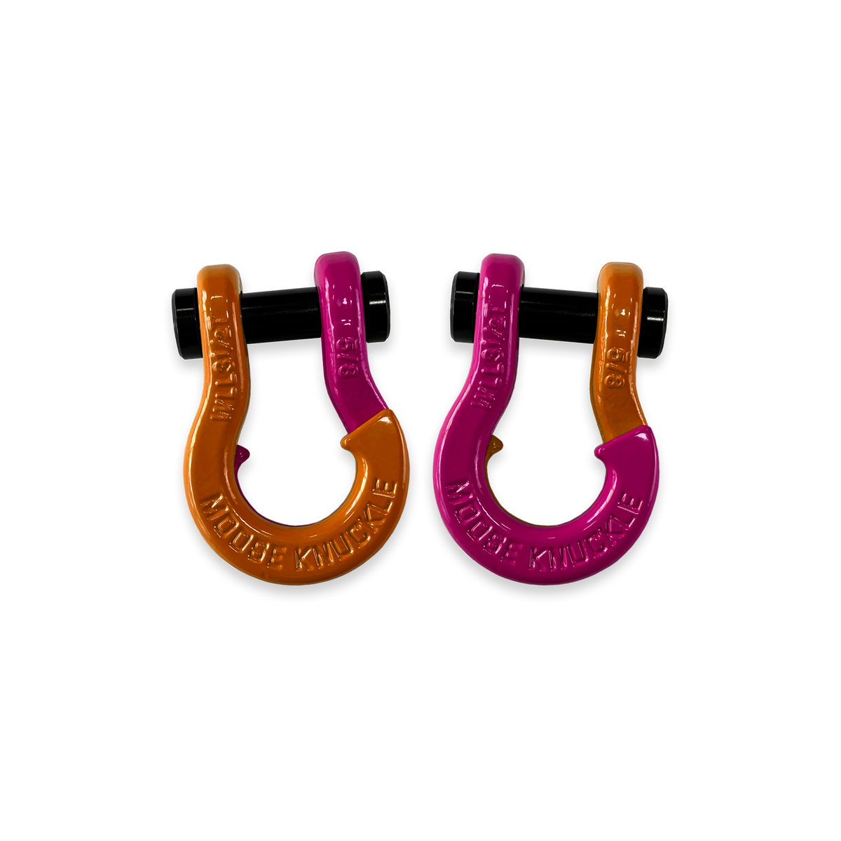 All color options are fully interchangeable. Buy two different color shackles and combine them to match the color scheme of your rig and give your build a more custom accented look. The hooked sides are fully covered with a durable powder coating pantone color matched to popular truck and Jeep colors. The shackle pin is Black Nickel plated and machined from High Strength Grade 8 Carbon Steel.