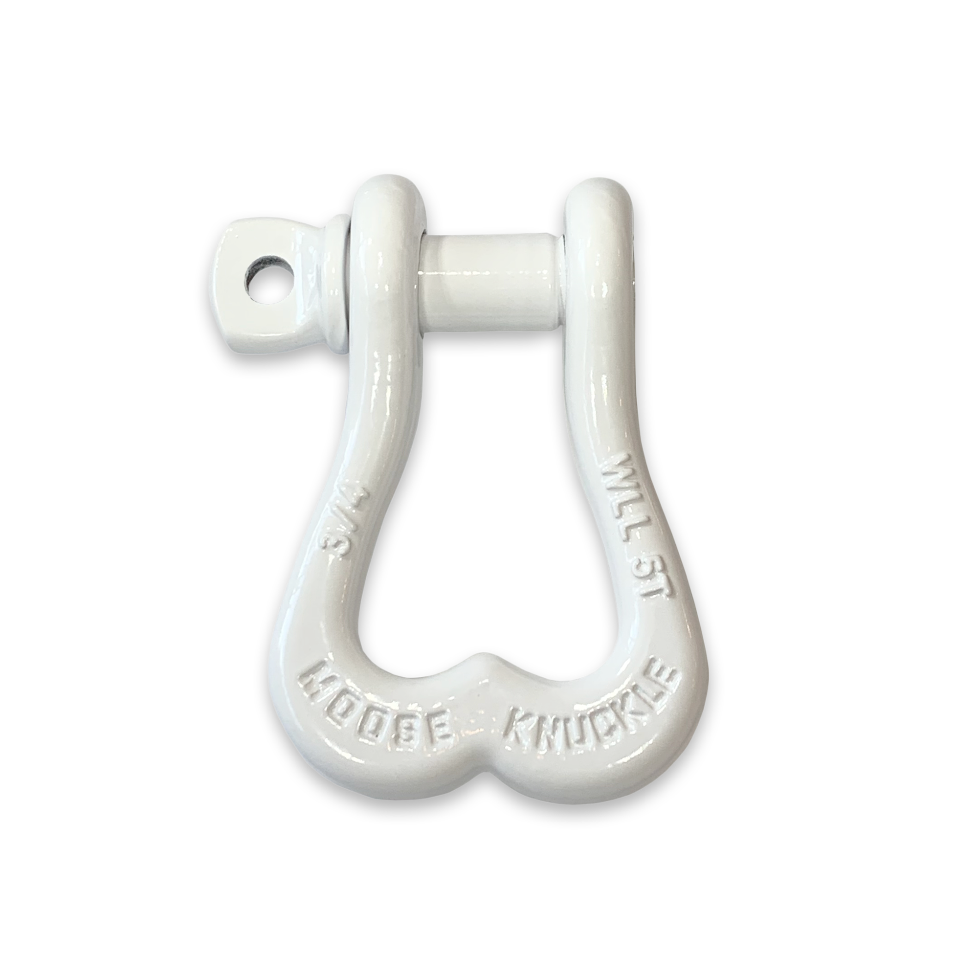 This Pure White colored powder coated Patented "man shaped" tow shackle has a 10,000 lb work load limit and is designed to make your next tow easier. The unique "B-Ring" shape prevents your snatch or recovery rope from over tightening.